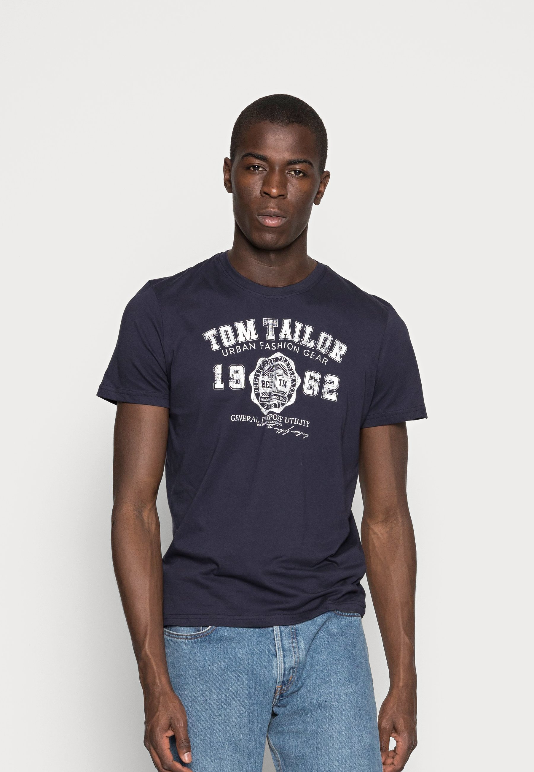 Tom Tailor Logo Tee Print T Shirt Navy Blue Dark Blue Zalando De