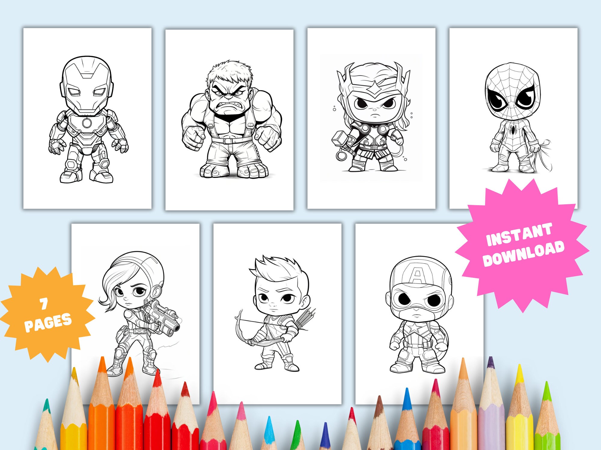 Chibi Superhero Coloring Pages Downloadable Coloring Pages Etsy Uk